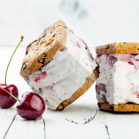 チェリーアイスサンドは北海道産のチェリーのアイスをサクサクのクッキーでサンドしたスイーツです。